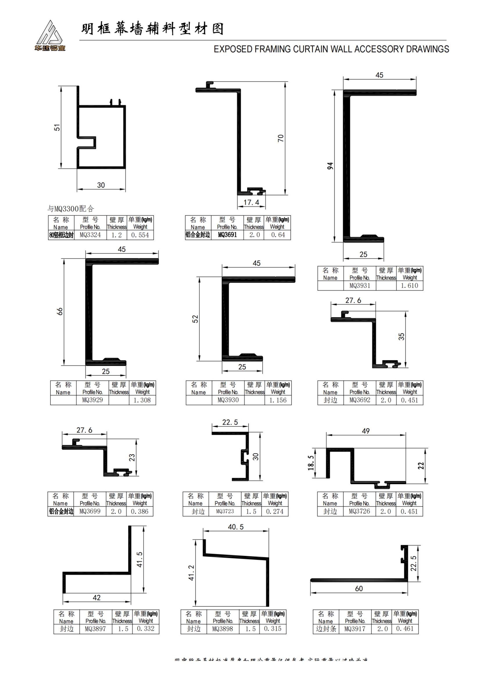 Profile diagram of auxiliary materials for transparent frame curtain wall