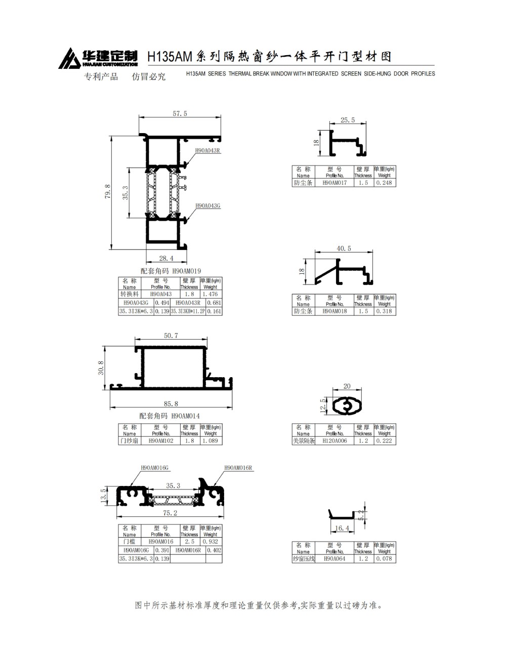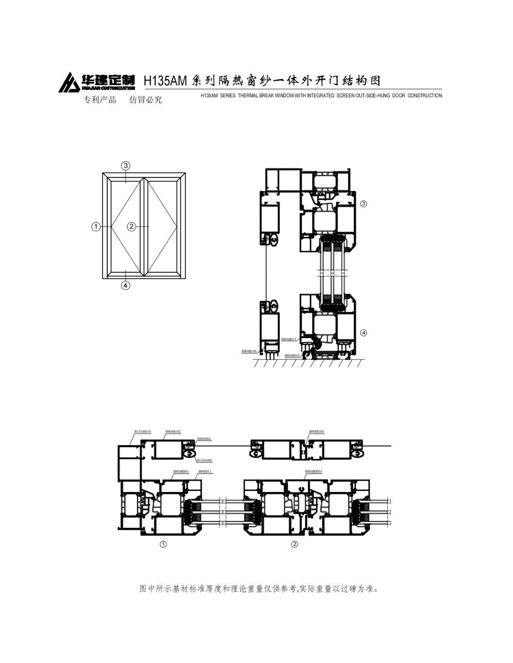 Huajian Customization - H135AM Window Screen Integrated Flat Door Series