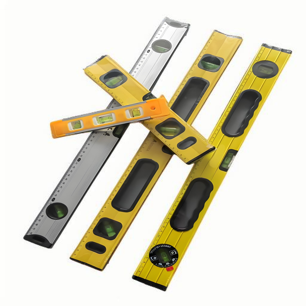 The production process of aluminum alloy level ruler adopts advanced technology and high-quality materials, such as using high-quality steel and reasonable technology to manufacture plastic molds, selecting high-quality imported plastic particles, and precision machining and spraying technology. All of these ensure the high quality and precision of the product. And it has advantages such as light weight, low deformation, high precision, and strong applicability.